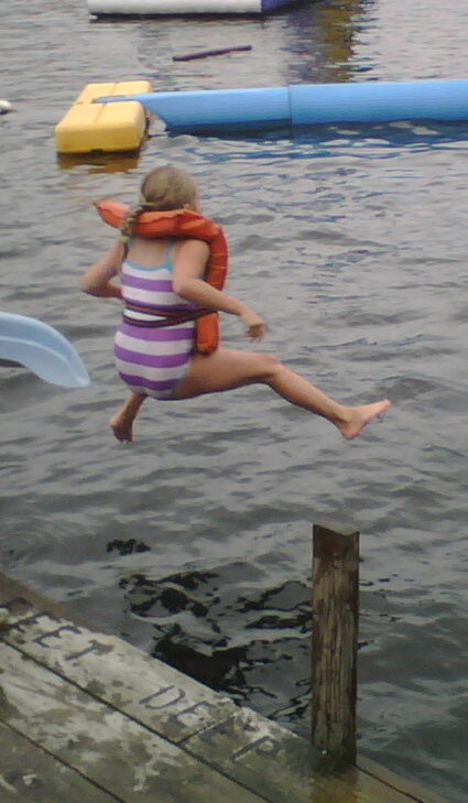 Emma woke this morning, saw the grey sky and said, “Uh-oh!  No swimming!”  As swimming is her favorite activity I think she was worried they would not have enough to do.  Joe reassured her as they left to get on the bus that there would be plenty of other activities, including gymnastics, her second favorite thing to do!