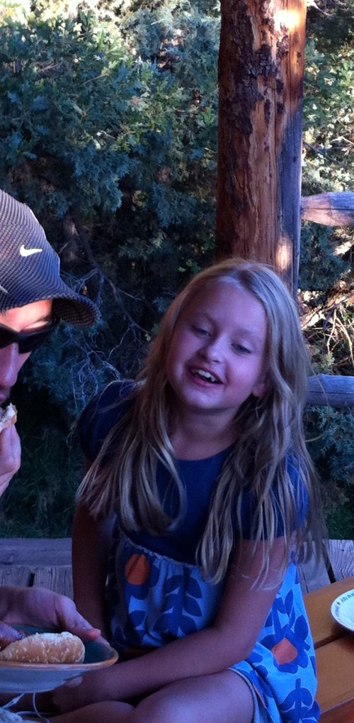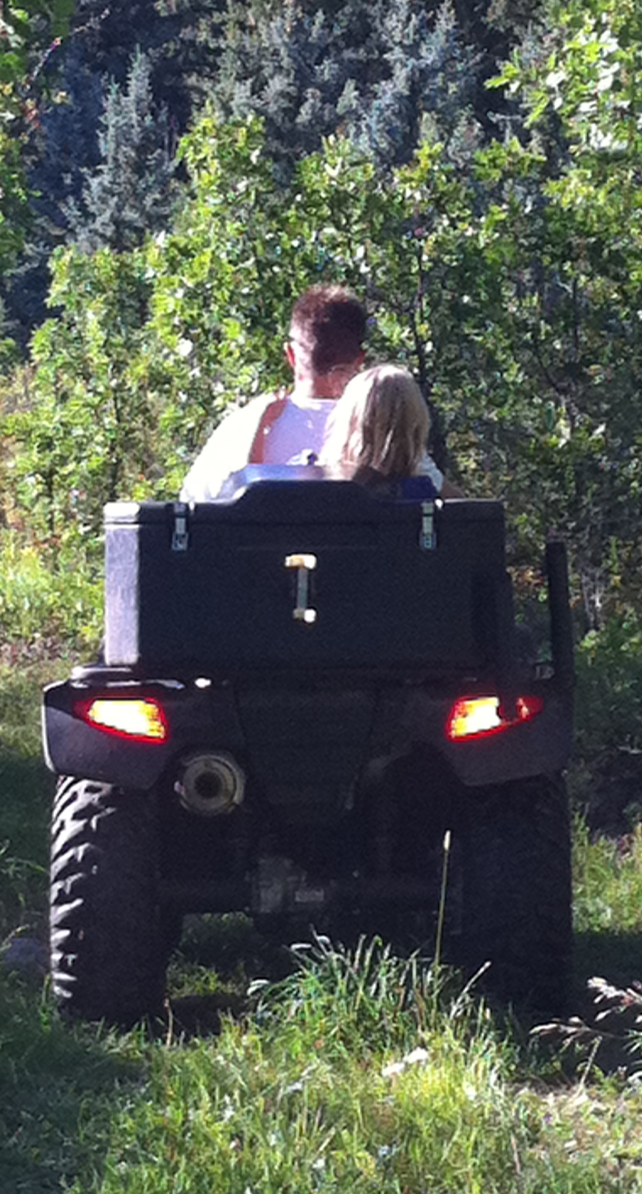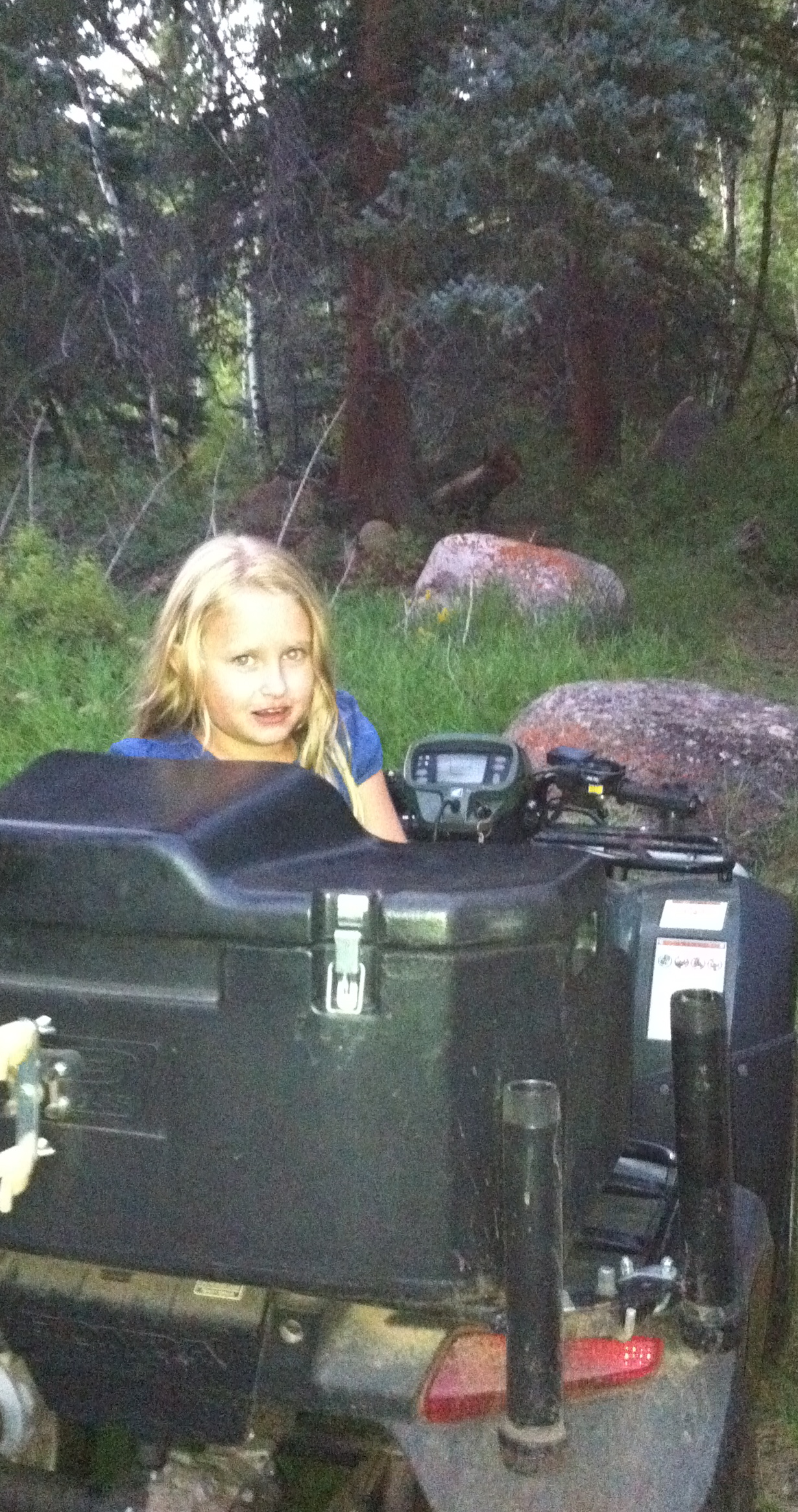 Colter, my other nephew was leading the way in a piece of machinery I actually do not have a name for, but it looks formidable, with much of our food in the back.  It was a procession and Emma was ecstatic riding along with Bridger as the rest of us trudged behind bringing up the rear.