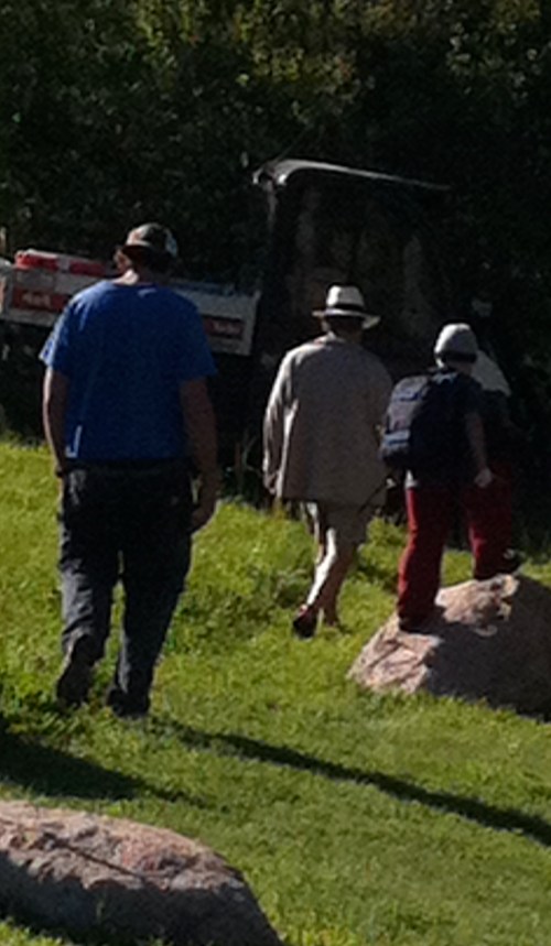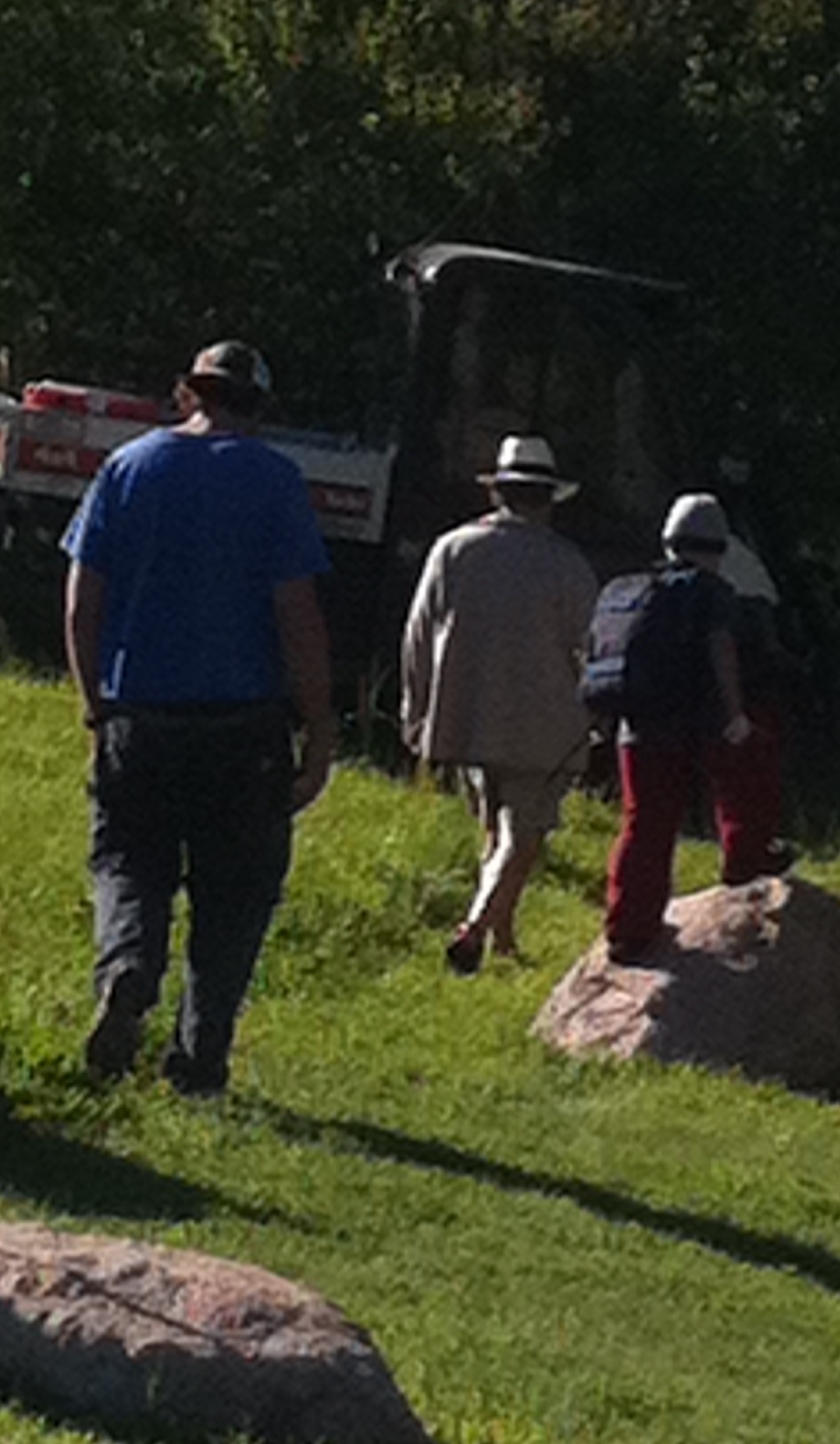 A group of us made our way down the hill and over the stream that each summer the beaver dam up, and then up a little way until we rounded the bend and caught a glimpse of the cabin’s red roof.  Emma was ahead of us riding on the four-wheeler with my nephew, Bridger.