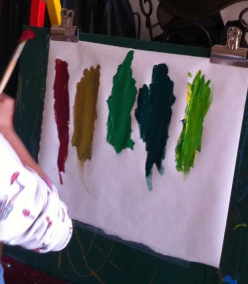 When Nic was finished painting a particularly gruesome monster – his specialty, Emma said, “Mommy! Can I have a turn to the paint?”