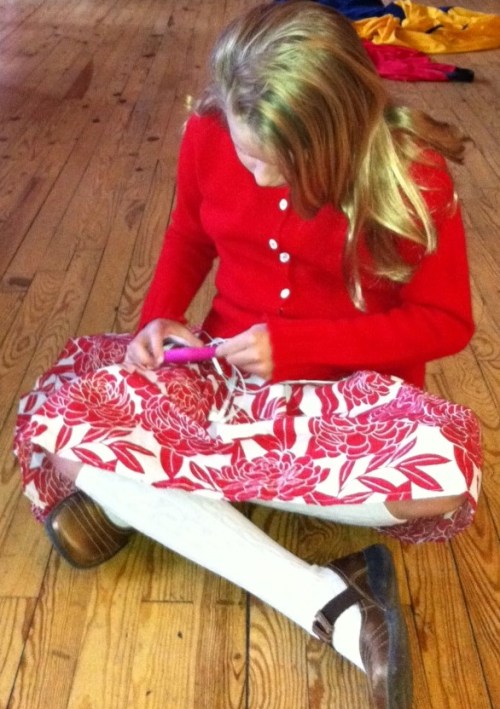 Yesterday the forecast was for a high of 72 degrees, (even though it went up into the 80’s!) so I tentatively pulled out some spring like clothing for Em and held my breath when I presented her with: a skirt made of cotton, no elastic waist band, soft cotton t-shirt and soft red (wool) sweater, no annoying tags as I had cut them all out. Then I stood back and watched. Miraculously Emma put everything on, then chose her shoes, “wear these shoes!” she said cheerfully as she pulled on her socks and pushed each foot into a bronze pump.