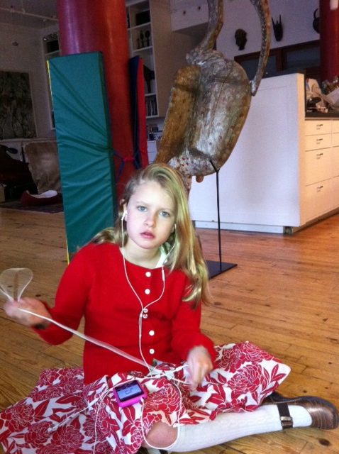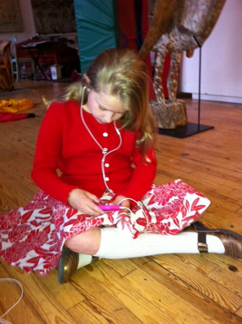 Emma getting ready to listen to some music on her ipod