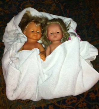 “Dolls all done!” Emma said, as she wrapped her dolls in several towels.