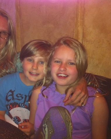 After the movie we walked to a restaurant, a little trendy upscale diner with loud rock and roll music (a plus for Emma & Nic who knew all the songs) and with fast service.  Even so, going out to eat is not something we do often as a family as it can end with drinks knocked over, loud utterances of “Time to go now!” from Emma or she will simply get up and leave with one of us racing after her.  This restaurant was one of those places that doesn’t really get crowded until after 8:00PM so we had no trouble securing one of their much sought after booths at 6:30PM.  Emma has such a limited number of foods she’ll eat, we came prepared with her favorites, which she happily ate when our food was served and then patiently waited for us to finish.