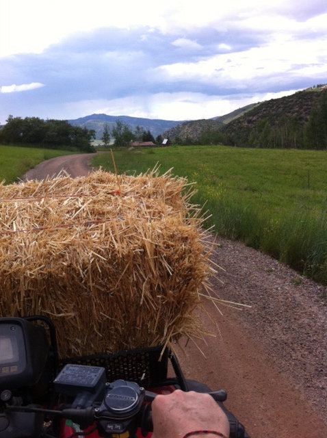 Perhaps more exciting than even the ARC (Aspen Recreational Center) is the 4-wheeler kept up on the ranch. For those who are not familiar with this piece of machinery, it is a cross between a kind of Hummer version of a motorcycle and an open air golf cart. My two nephews, Colter and Bridger, are cringing at this crude and citified description of mine, because it is actually an essential piece of powerful ranch equipment used to change sprinkler heads, and to haul a variety of other things. Things I do not pretend to know about. To me, it is the vehicle we use to go looking for coyote, fox and other wild life up on the ranch. Last summer we found a den of coyote pups, so cute(!) whose mom lay basking on a nearby rock, unruffled by our intrusion, she didn’t move a muscle as we rode by within ten feet of her pups. (I know Colter and Bridger – you guys might want to just shut your computer down at this point – it’s got to be painful to read this description.)
