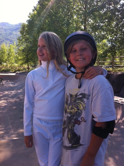 That’s how it is with Emma when it comes to physical things. She has always insisted on doing things herself and while she can take direction, it is often very difficult for her to be taught by someone who relies on verbal explanation. Emma feels and learns from watching and doing. So when she put her arm around her brother, Nic the other morning at the skateboard park and said, “Nicky’s turn, then Emma’s turn,” we knew we were going to have to get creative if she was going to learn to skateboard.