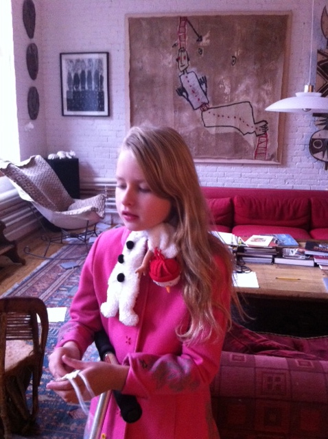 When it was time to put her coat on to go downstairs, Emma ran to the coat closet. “Scarf! Let’s see, how about this one?” She pulled down one of her scarves.