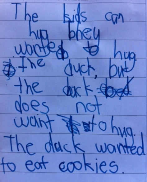 I had to give her support a couple of times when she would say a word, such as “the” or “to” but then would forget to actually write it and wrote the next word (always a noun or verb) instead. According to Dr. Marion Blank, the woman who created the literacy program we have been using with Emma for the past nine months, children on the spectrum dislike non-content words.