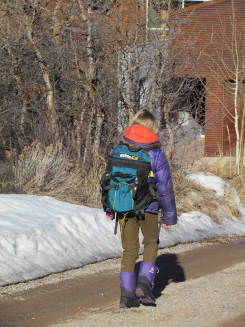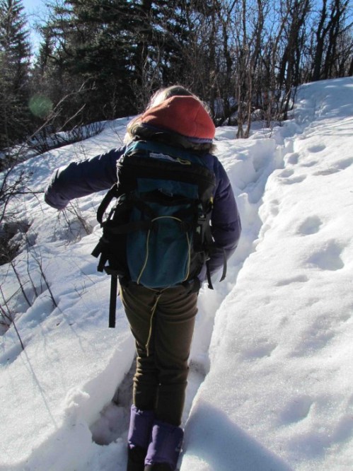 Emma grabbed the heaviest pack and began tromping through the snow.