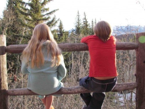 But Emma was much more interested in sitting on the porch railing with her brother.
