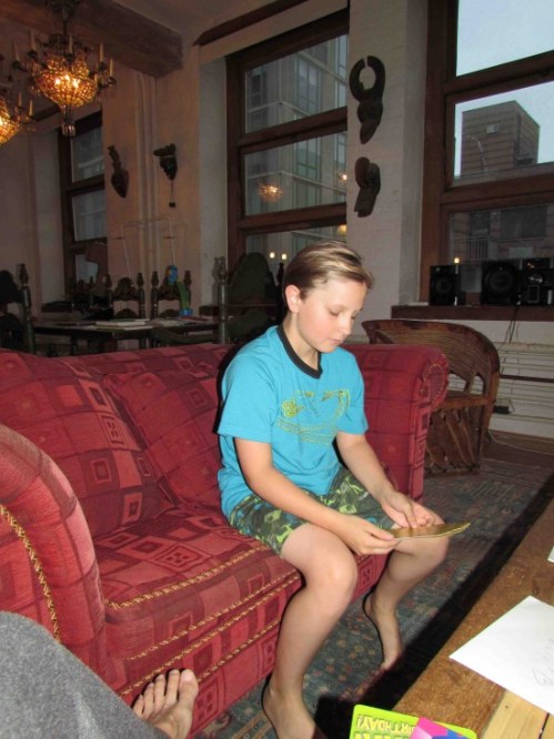 Then Emma launched into a rousing rendition of Happy Birthday, not once, not twice, but three times!  By the third time she was beginning to lose her audience, not that she cared.  Nic was intent on opening his presents.  “Where’s Dad?”  he asked more times than Emma sang Happy Birthday.