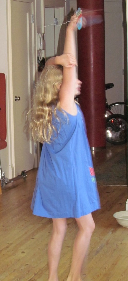 As far as the potty training. This was an instance where an ABA style program WAS helpful. We have a chart and every 20 minutes one of us took her to the bathroom. It was all done very matter-of-factly, with no emotion. She loves music, so every time she went to the bathroom successfully in the toilet, we played some of her favorite music. I cannot remember how long we did this for, but I know it was more than a few days. I have old charts that span MONTHS! Eventually she graduated to underwear during the day. When she was eight we tackled the nighttime wetting. I’ve written extensively about it on this blog, look under category and go to “bedwetting” I believe the first post is in May 2010. By September she was out of diapers completely and to date has never had an accident.