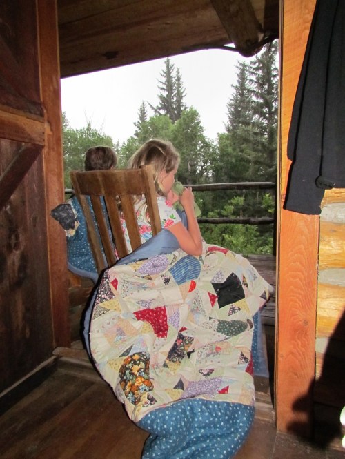 “It’s the cabin!”  Emma yelled as she bounded up the steps.  We settled in, put the screens into all the windows, swept up the cobwebs and made up the beds, while clouds began to roll in over the mountains.  A number of red-tailed hawks flew overhead calling to each other, or at least that’s what I assumed they were doing.