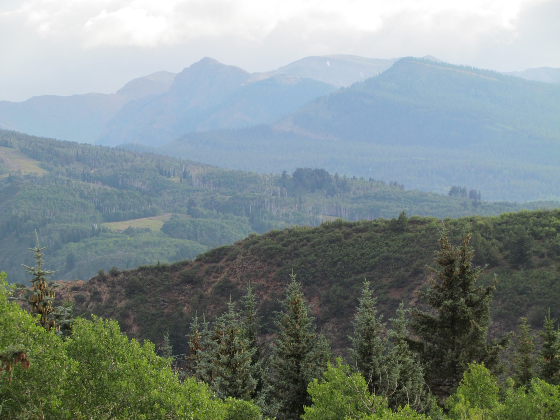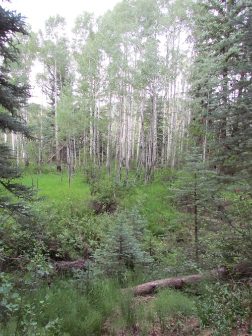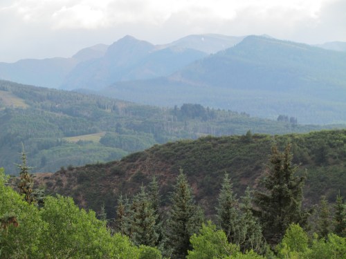 Emma loves going to our cabin.  It has become a tradition to spend the night there at least once during any given trip to Aspen.  Yesterday was our designated “sleepover” night and Emma was beside herself with excitement.  We packed backpacks and some bags up, put them into the front of the 4-wheeler and set off.  This is our equivalent of taking a fully equipped camper out to a campsite and calling it a “trek.”  I made a number of derisive comments about our lack of adventure (aka laziness) while Richard and Emma ignored me.  At one point Richard stopped the 4-wheeler and said, “No one’s stopping you from walking, you know.”  Which pretty much shut me up.  Until we ran into this –