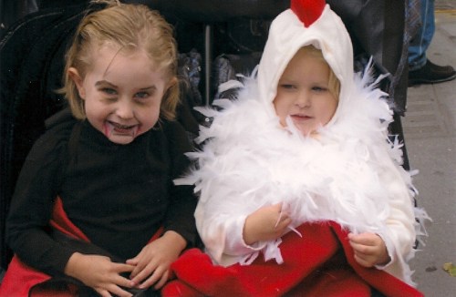 Emma doesn’t care about the candy, she has no interest in going up to people and saying “trick or treat”;  for Emma it’s all about the costume.  Unlike her brother who sees the costume as a necessary annoyance to getting sugary morsels, sort of like the jacket and tie required at certain restaurants.  I have to say, I’m with Emma on this one, other than an inexplicable craving for that truly dreadful candy corn, (what do they put in that stuff?)  the idea of wandering around strong arming people into giving me treats doesn’t hold much interest.  However it’s right up Nic’s alley.  Each Halloween we debate which weapon in his arsenal he will brandish.  Usually he chooses several and with the inevitable face paint he demands, resembles something out of a spread in National Geographic featuring child soldiers in some war-torn country.  (Yeah, I did just write that.  Moving right along)  Nic finds Emma’s lack of candy enthusiasm absolutely baffling.  And while Emma doesn’t voice her astonishment at her brother’s disinterest in all things costume, I have to wonder that she doesn’t think it… odd.