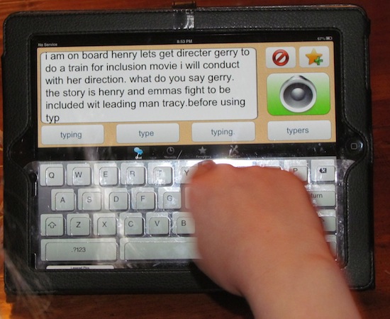 Emma, being the consummate performer that she is, could not resist occupying the seat Larry vacated during a break at the University of Southern Florida, the day before the screening, where she wrote for all to read – “My mom and dad hope to meet more people like Larry and Tracy. Wow(*!) I am stirring up a crowd(*.) time to work with people at home in new york to show them it is the intelligent emma there…” *punctuation was added by me for the purpose of this post and indicates the smile Em gave and the pause she took between typing “crowd” and “time”.