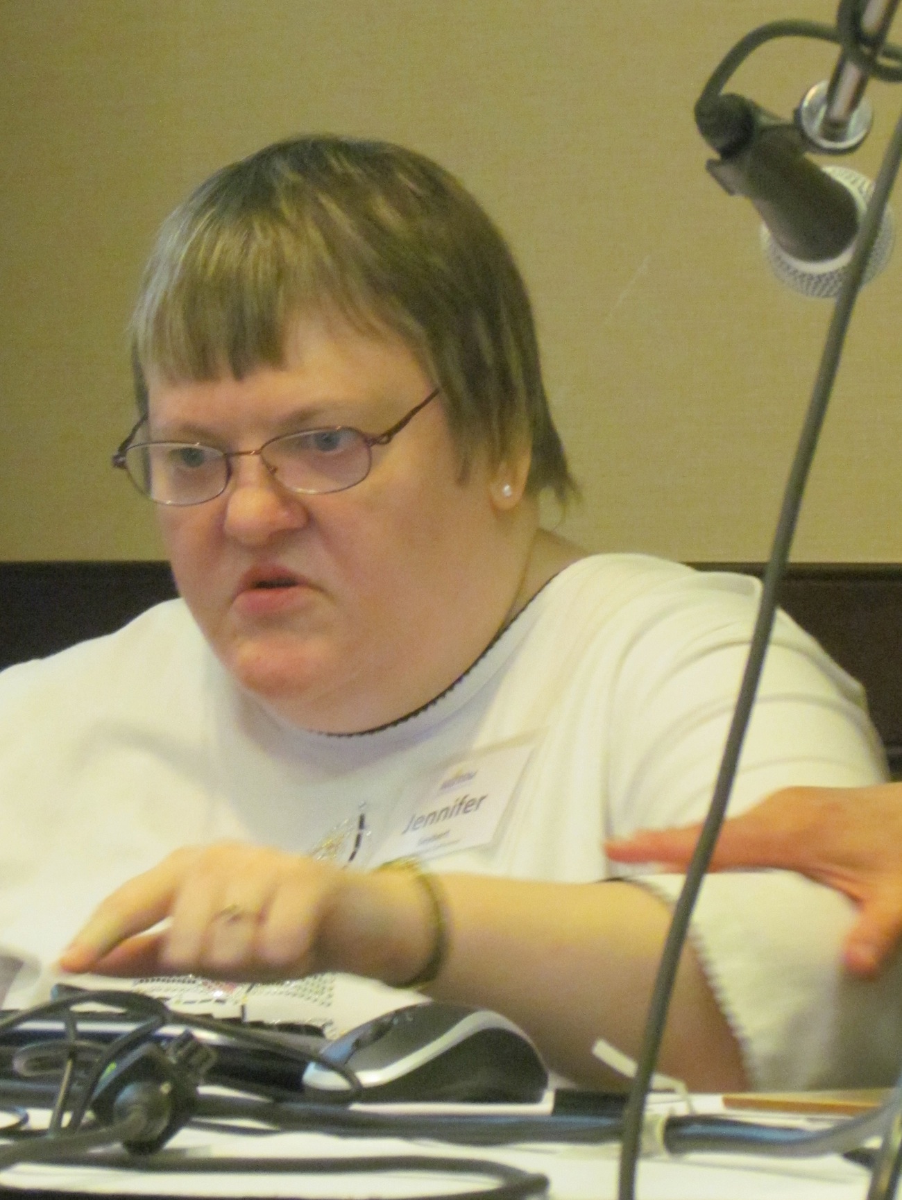 This voice? The one that you’re hearing read these words? Yeah, that one. It isn’t my voice. It’s my mom’s. You’re probably wondering why a teenage girl would want her mom to read what she’s written. In my case, it’s because I can’t read what I write out loud. There’s not a direct line between my brain and my mouth. It’s more like an elaborate maze. I can’t speak so people understand what I mean. If asked a question, my mouth says things that do not answer the question. My brain doesn’t think in words the way most people’s do. Names of things and people get handed to me instead of the words that would make sense to the person questioning me. Sometimes I blurt out whole sentences from another time in my life. (Emma’s voice) “I bounce a balloon to Emma. I bounce it back to me.” They may be images that remind me of the person I’m with or where I am, or words I’ve heard spoken by others, things that get caught in my mind, or unrelated scripts, but that convey the exact emotion I’m feeling. (Emma’s voice) “No more ice skating. Ice skating’s gone.” In any case, what I manage to say usually baffles the people I am speaking to, causing them to misunderstand me. Not being able to speak what’s in my heart so that others are able to understand can be challenging, but I can type things that I cannot reliably say. There are computer generated voices that say the letters as I type them and sound like this – (Computerized young girl’s voice) “I am your friendly computerized female voice. I sound like I’m maybe five years old.” (Another computerized young girl’s voice) “Or I can sound like this and pretend I’m British. But yeah, it’s just not me.” Or I can sound like this. Okay it’s not my voice, but with some direction, Mom sounds better than a computer.
