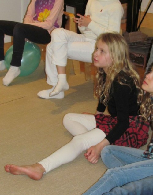 (Karen) “Emma has really great pitch control. She knows exactly how the melodies go whether she knows the words or not and she makes it a real point to study each specific thing that happens in the song and can honor each thing in the song by movement and she can also emulate the sound really well as far as consonants and vowels.”