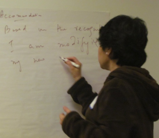 Yesterday was the last day of Soma Mukhopadhyay‘s 4-day training.  I wrote about it ‘here‘, ‘here‘, and ‘here‘.  Soma packs an enormous amount of information into four days.  She discussed everything from neural pathways of the brain to which parts of the brain are used during specific activities, to how to devise lesson plans and ways to physically position oneself in relation to the student.  There were so many surprising moments, but one that I never could have anticipated, was how helpful it was to learn about the actual brain function during moments that are emotionally charged or OCD.  Learning some of the basics in brain function demystified a great many things in a way I hadn’t before considered.