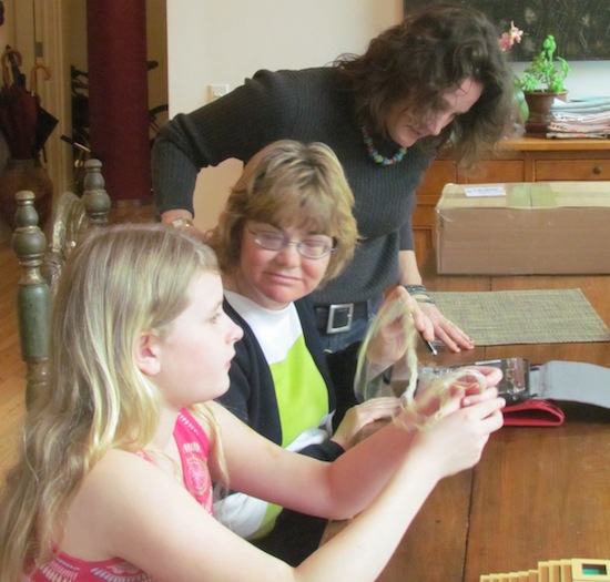 Barb types with Lois’s hand on her back as Emma twirls her string – April 2013